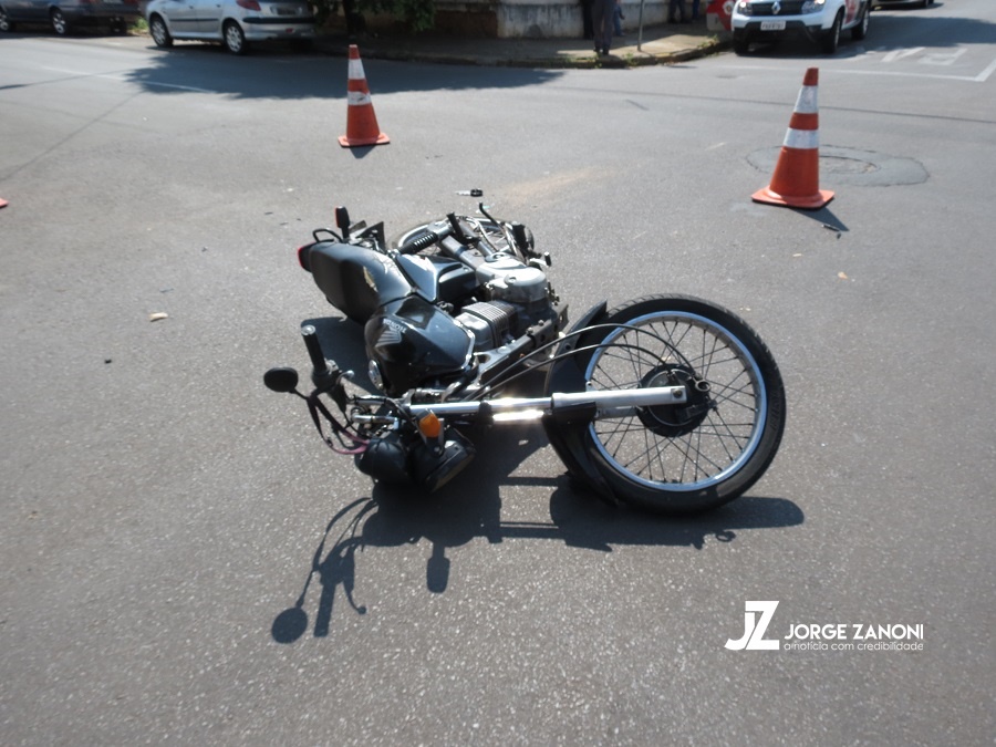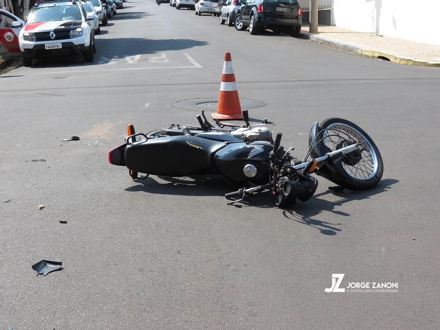 A moto fazia o sentido centro-bairro pela rua Brasil que é via preferencial quando teve sua frente interceptada pelo veículo que fazia o sentido bairro-centro pela rua Euclides da Cunha e não teria respeitado o sinal de Pare.