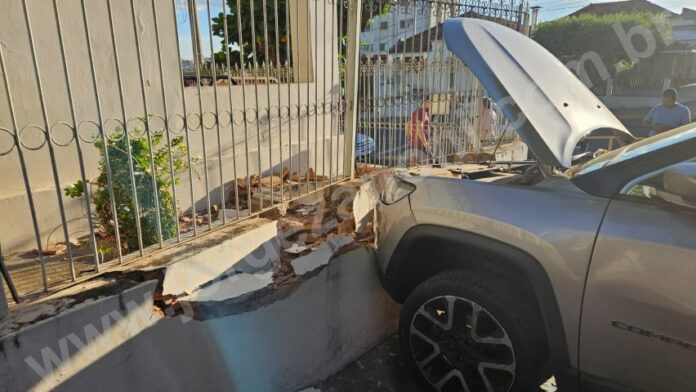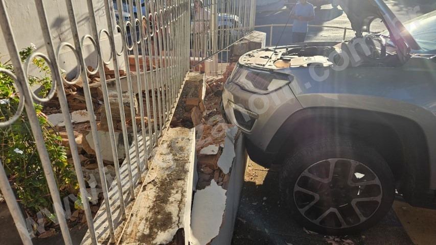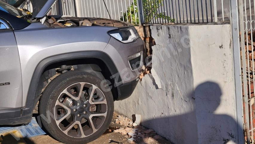 Com o impacto da batida o Jeep desgovernado atingiu o muro de uma residência.