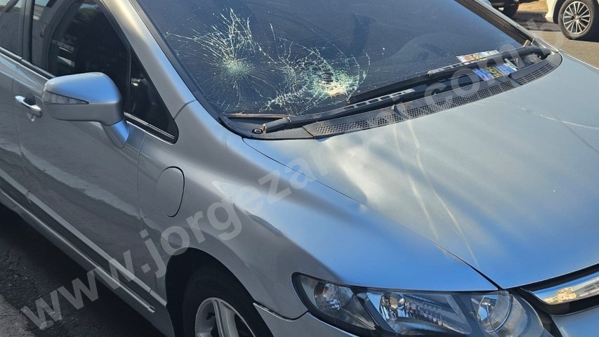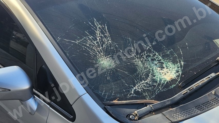 Com o impacto da batida o animal caiu em cima do capô, quebrou o para-brisa do Corolla e ficou ferido.