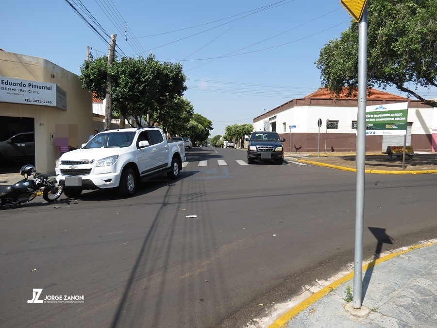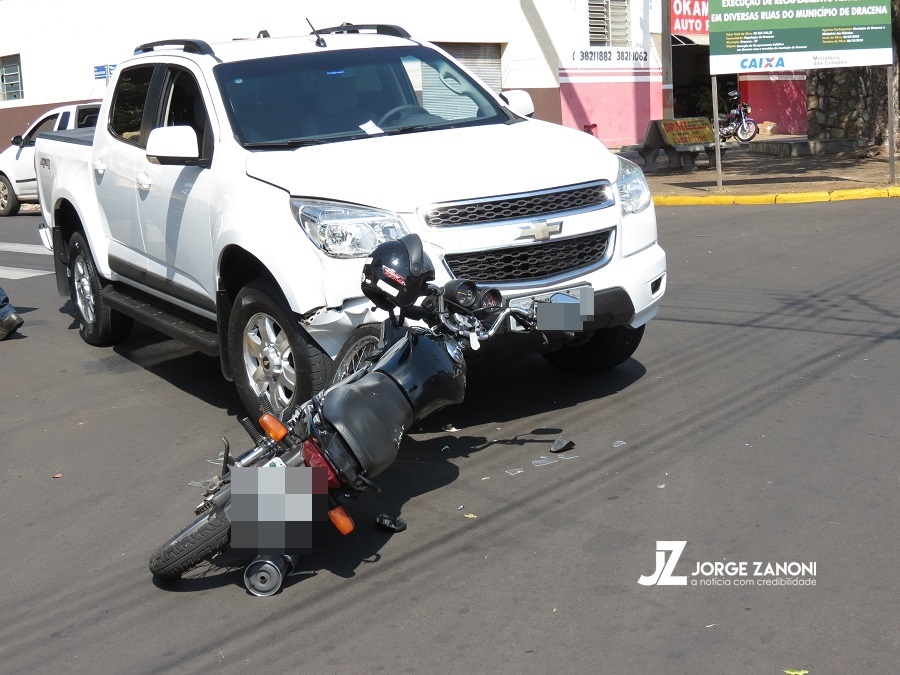 Segundo informações obtidas no local pela reportagem do Site JZ, bateram uma Caminhonete placas de Brasilândia/MS. dirigida por um homem que entrou na contra-mão de direção na Marechal Rondon que está devidamente sinalizada e uma Motocicleta placa de Dracena pilotada por um rapaz de 26 anos que tinha uma mulher de 29 anos na garupa, e fazia o sentido bairro-centro pela Florianópolis onde tem um sinal de Pare.