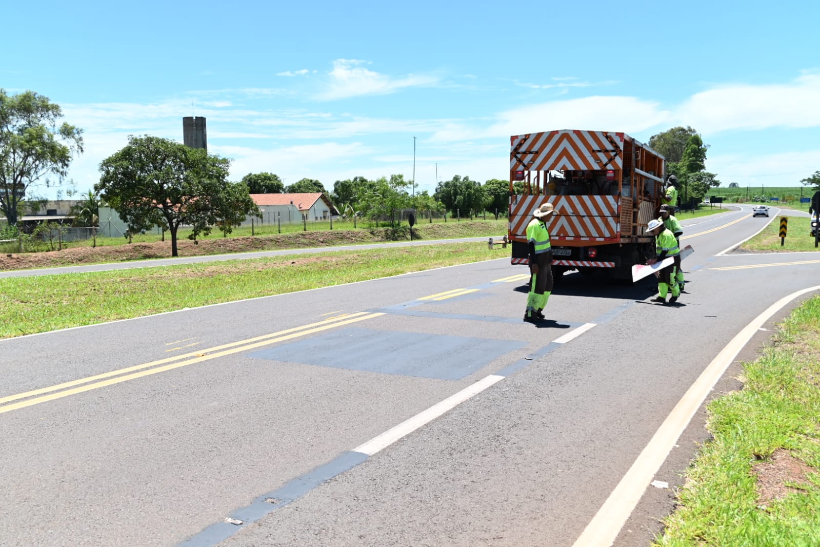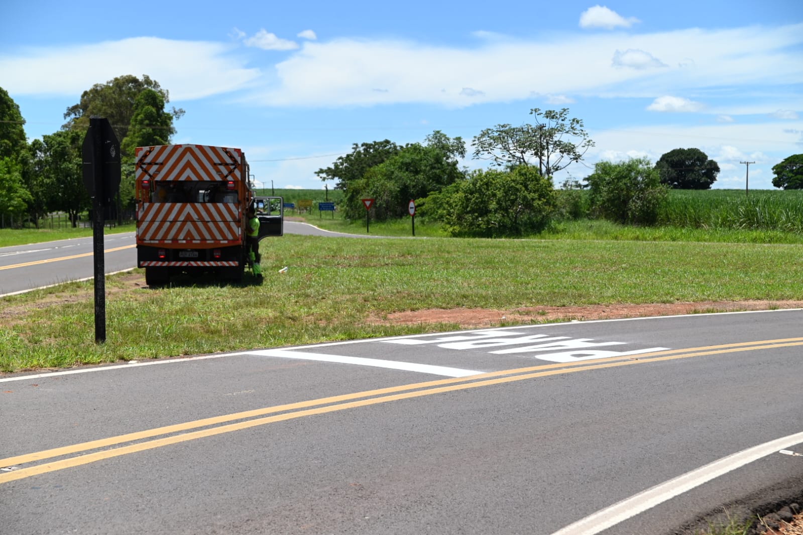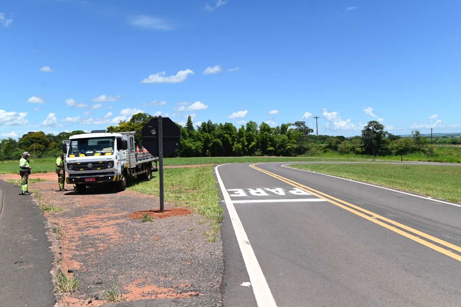 Nesta quarta-feira (14) funcionários do D.E.R., estiveram trabalhando no trevo das Rodovias Comandante João Ribeiro de Barros com Byron de Azevedo Nogueira SPA-126/563, proximidades da Penitenciária de Dracena.