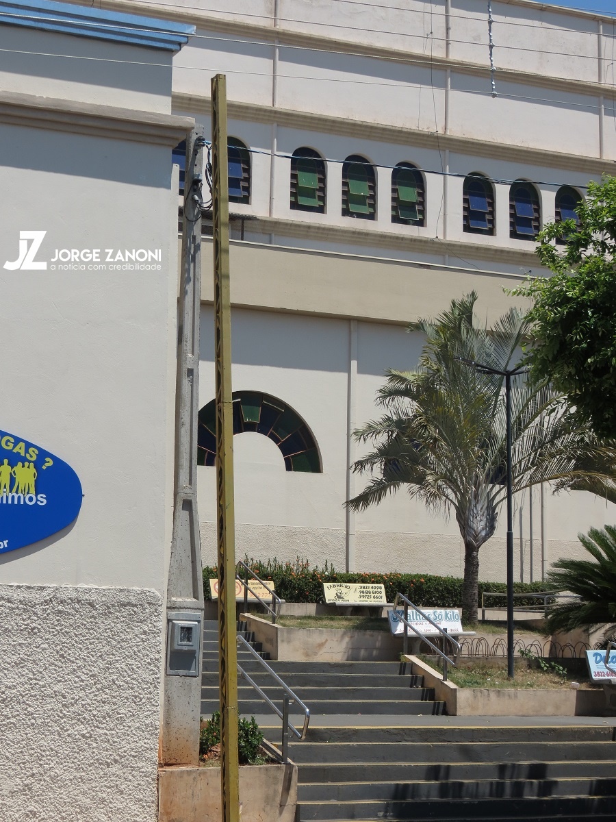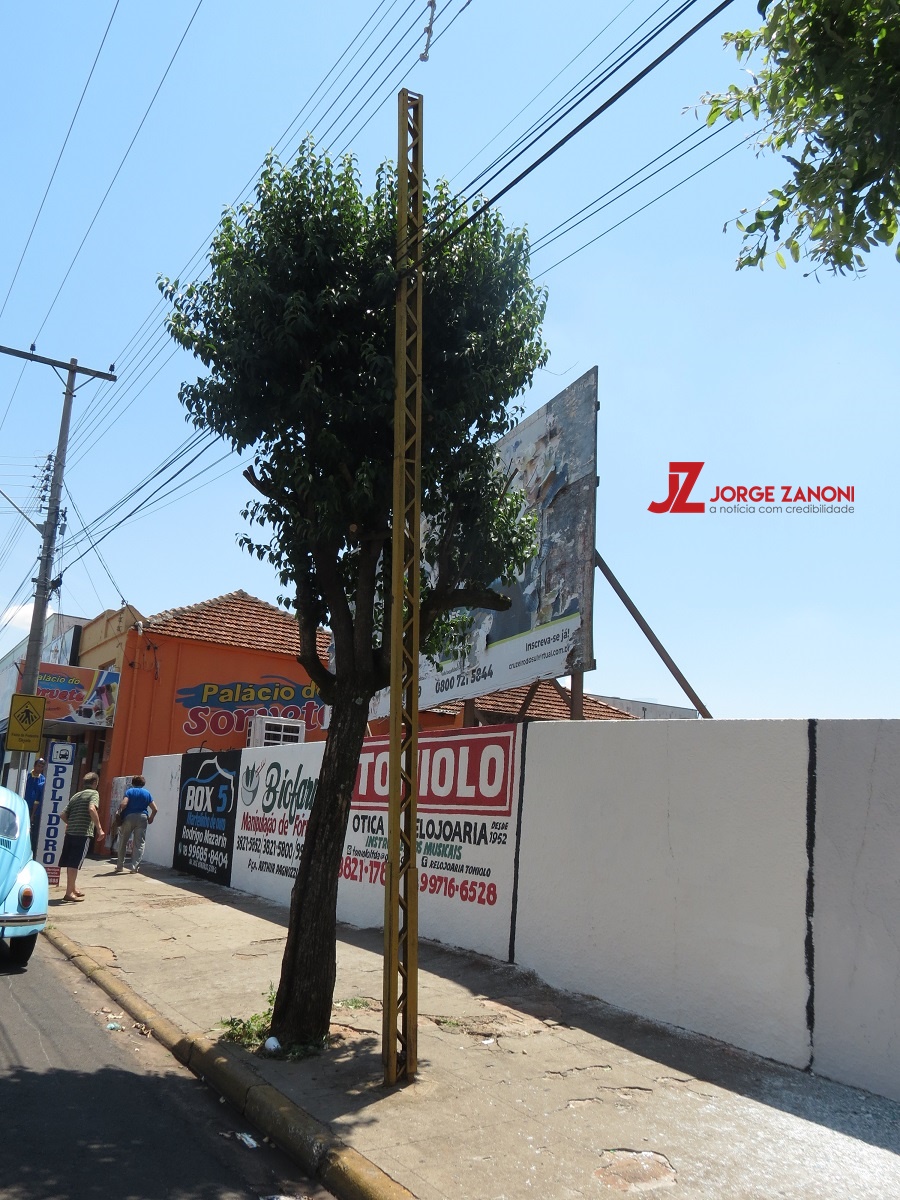 Uma estrutura metálica usada para colocar faixas de propagandas, na avenida José Bonifácio ao lado da Igreja Matriz Nossa Senhora Aparecida de Dracena está causando preocupação.