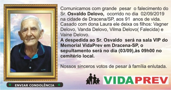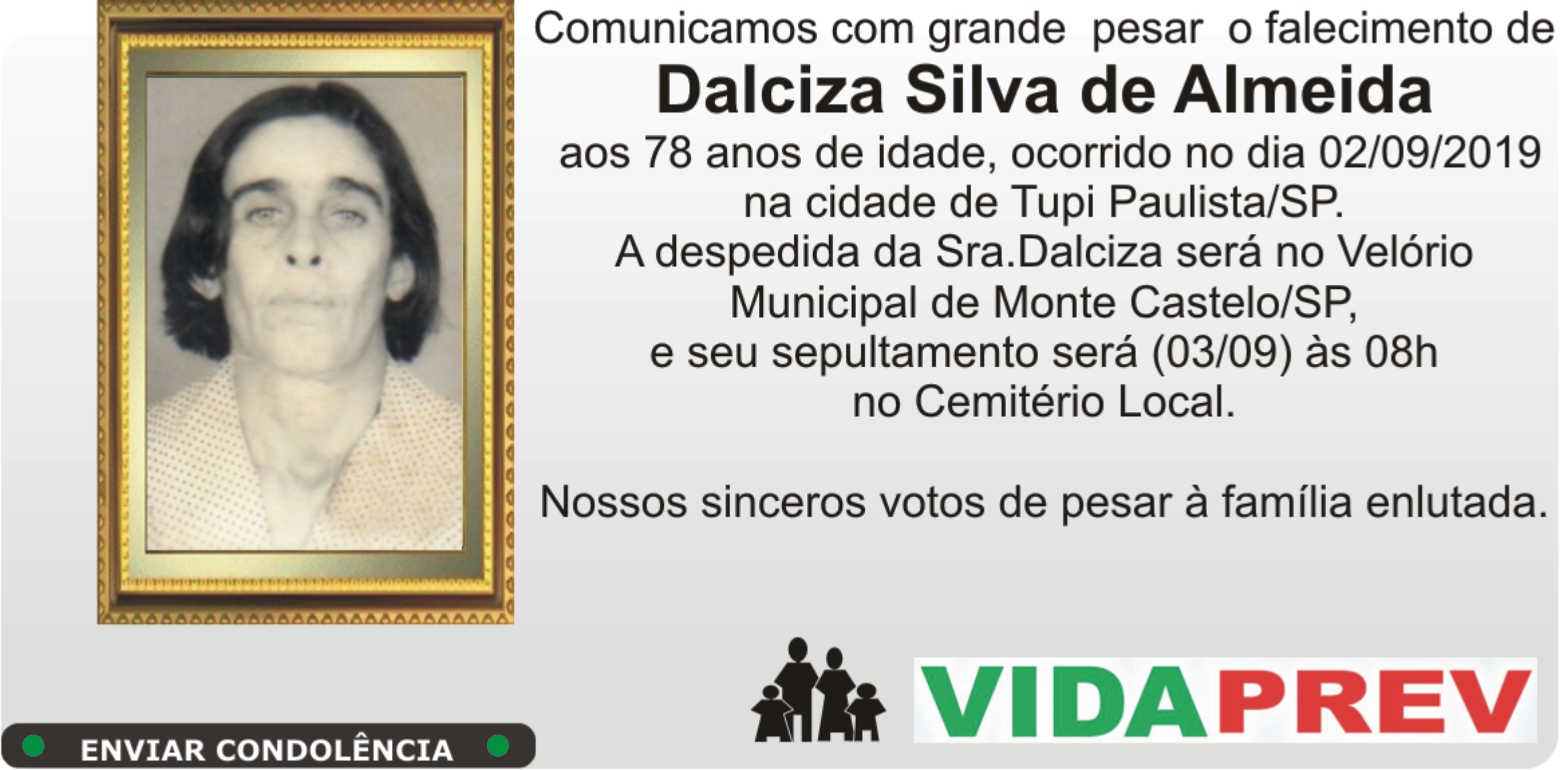 Nota de Falecimento Falecimentos 02/09/19 By admin - setembro 2, 2019 0 1887 Share Facebook Twitter Google+ Pinterest WhatsApp Compartilhar no WhatsappOsvaldo Delovo e Dalciza Silva de Almeida Compartilhar no Whatsapp
