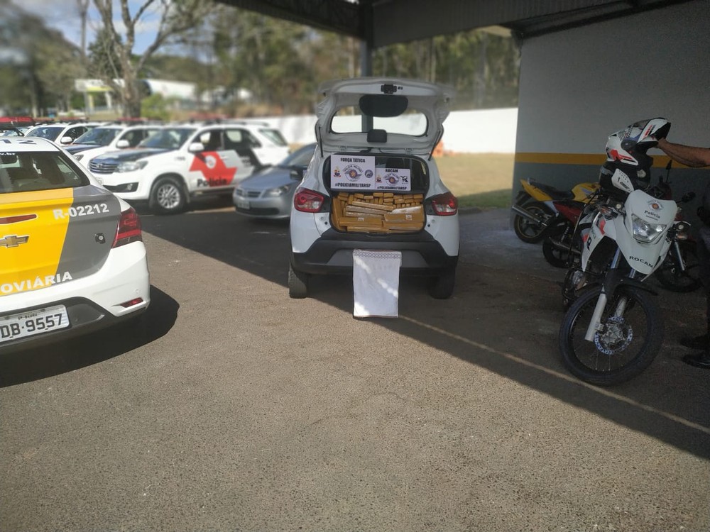 A droga era transportada em um carro roubado em Curitiba (PR), no qual seguia um casal de adolescentes, de 15 e 17 anos, que também acabaram apreendidos em flagrante.