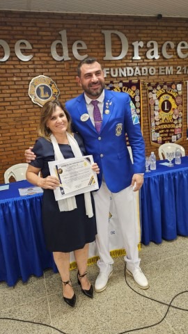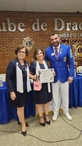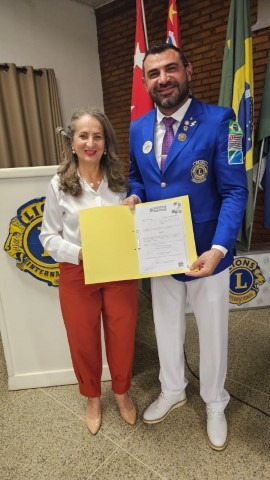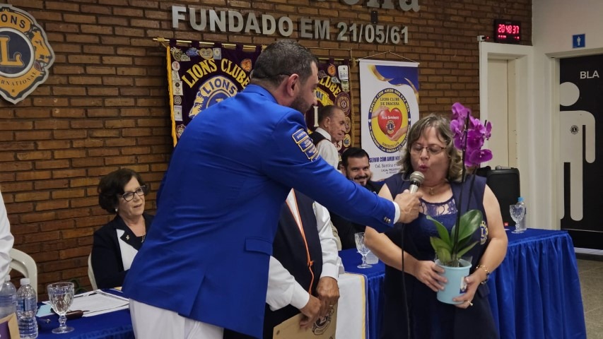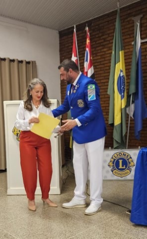 A Prefeita Municipal Geni Pereira Lobo Pesin esteve presente e entregou um Título de Hóspede Oficial ao Município ao Governador do Lions.