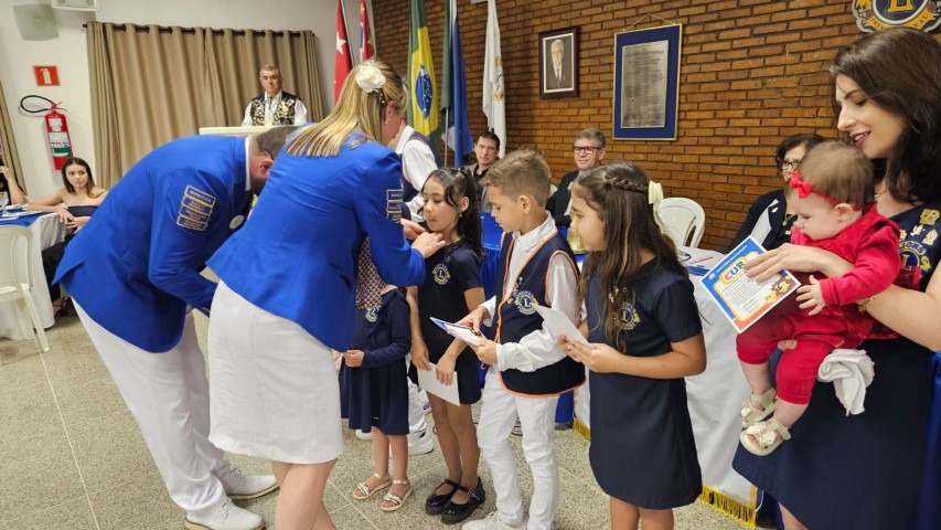 Foi entregue certificado de posse da diretoria e associados ao Clube dos Leõzinhos composto por crianças.
