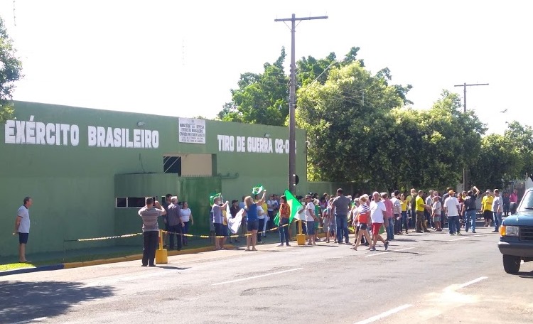 Posteriormente, manifestantes se concentraram na frente do Tiro de Guerra gritando palavras de ordem e encerrando o ato com o Hino Nacional Brasileiro.