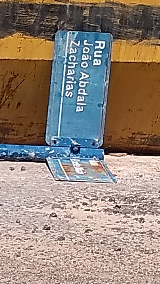 Morador do bairro Vitória Régia envia imagens de uma placa de sinalização com nome de ruas que está no chão há praticamente dois meses, segundo ele.
