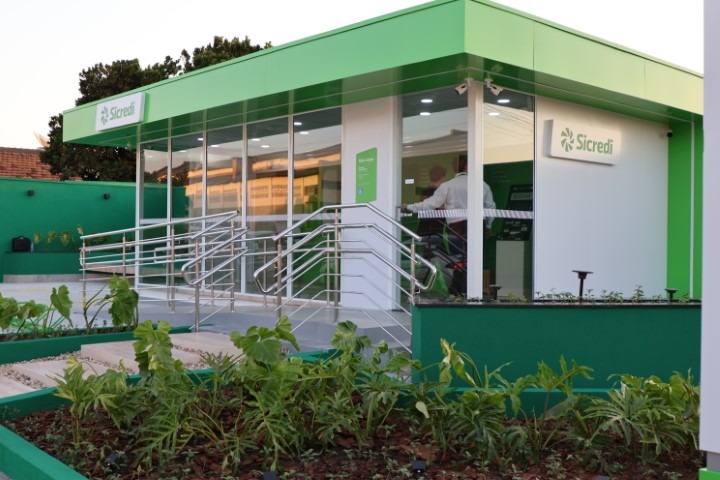 Já o Quiosque de autoatendimento, conta com 60 m² de área útil e foi projetado para facilitar o acesso dos associados aos serviços financeiros. O espaço dispõe de dois caixas eletrônicos multifuncionais, duas vagas de estacionamento, bicicletário e uma área de convivência aberta à comunidade, promovendo integração e bem-estar.