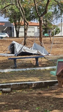 A fraca chuva acompanhada de fortes ventos aconteceu por volta das 14:30 Horas e fez estrago em diversos locais.
